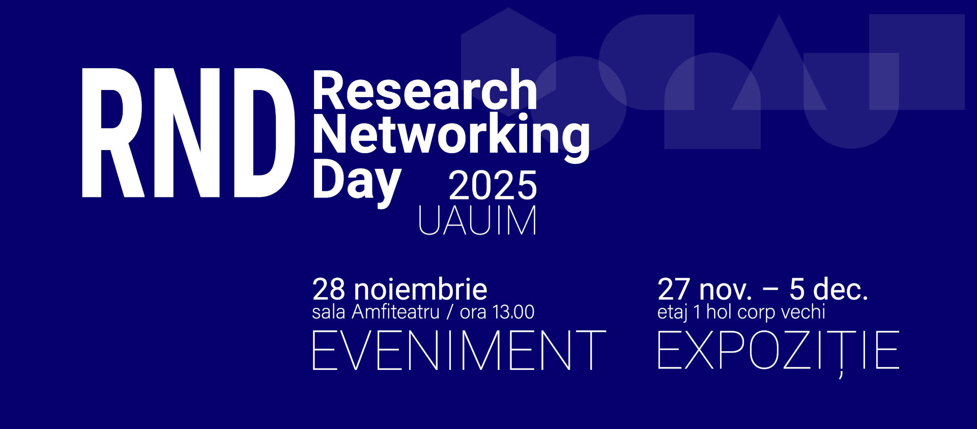Vă invităm să participați la evenimentul Research Networking Day (RND) ediția 2025, care va avea loc vineri, 28 noiembrie 2025, în Amfiteatrul UAUIM, începând cu ora 13:00.