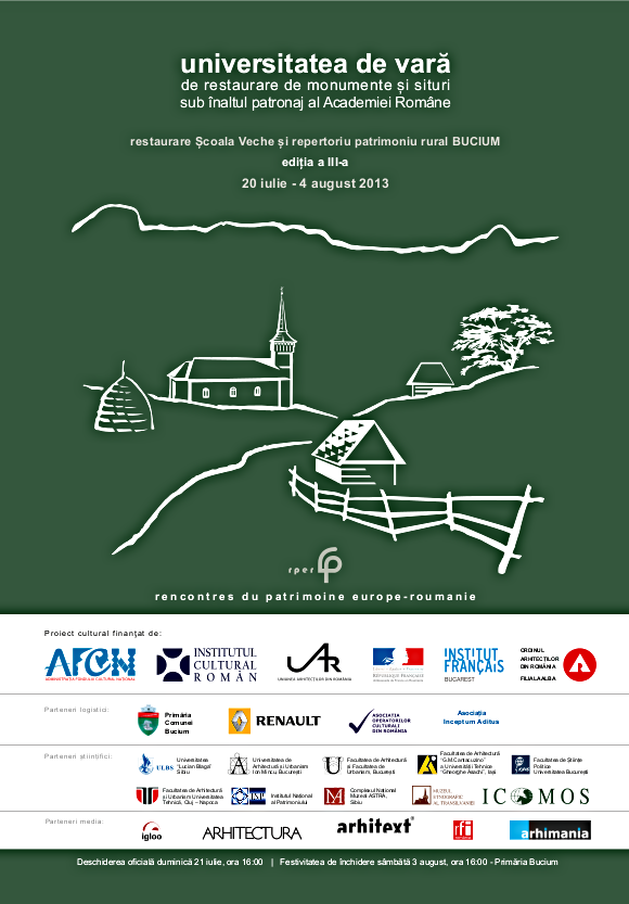 În perioada 20 iulie – 4 august 2013 Asociația Rencontres du Patrimoine Europe-Roumanie – RPER – organizează la Bucium a treia ediție a „Universității de Vară de restaurare de monumente și situri”- UdV, sub înaltul patronaj al Academiei Române