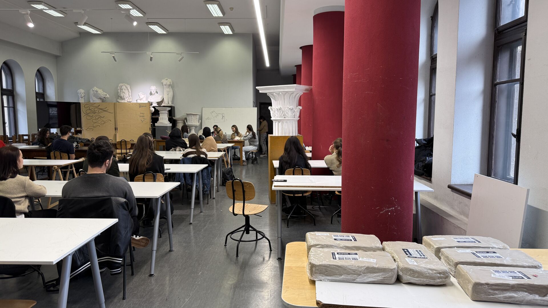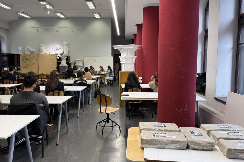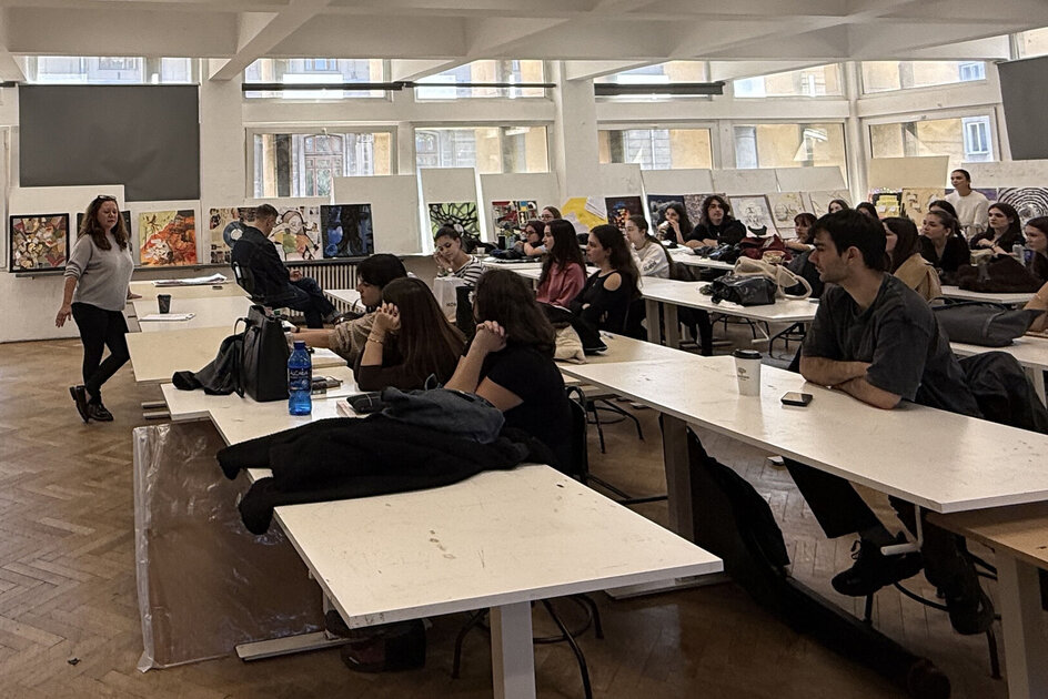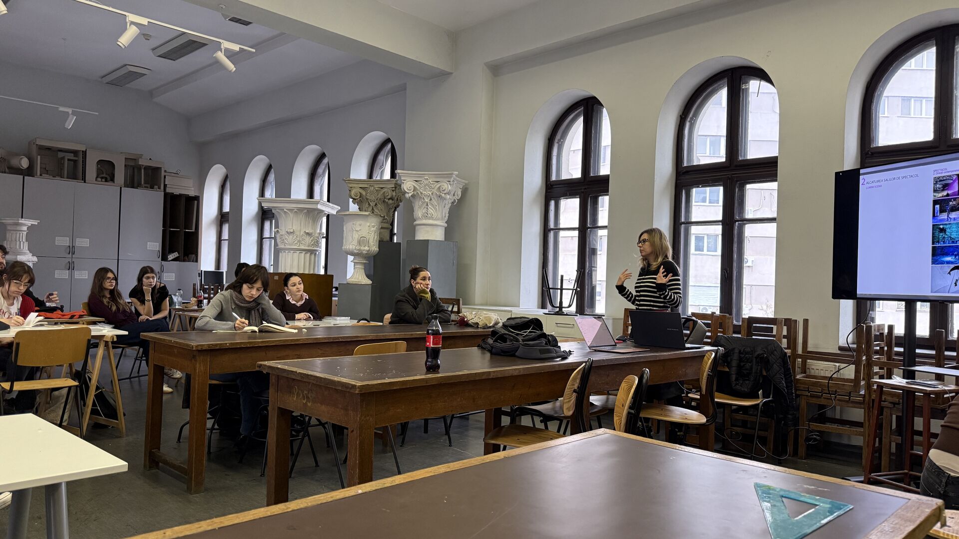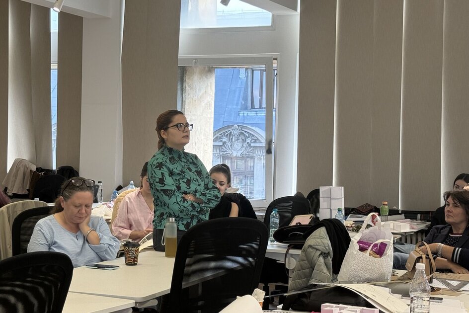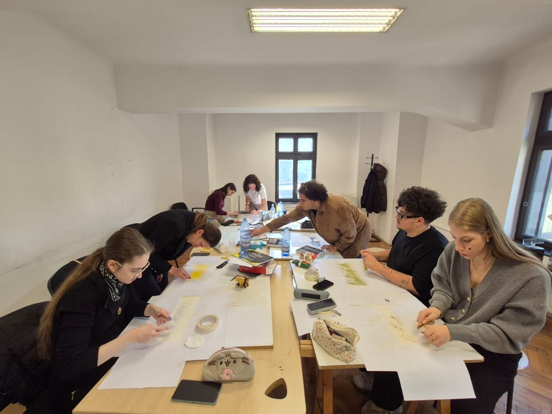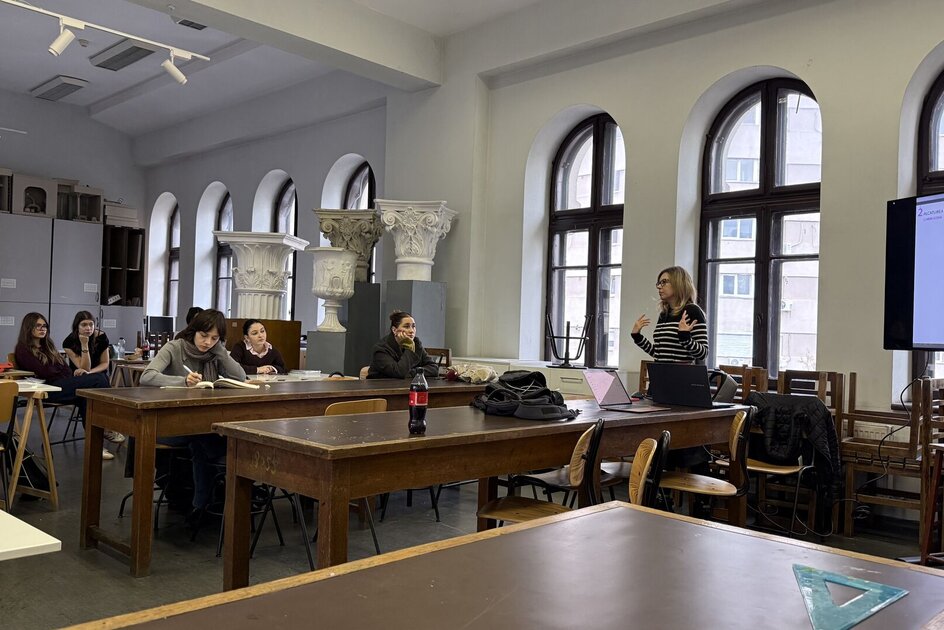 Workshop Tehnici de redactare plastică a proiectelor de atelier (21 oct.2025); 2 cadre didactice instruite, 7 studenți de anul I participanți.
