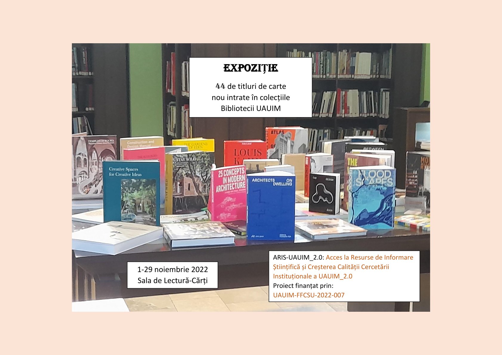 Expoziție de carte - 44 de titluri de carte nou intrate în colecțiile Bibliotecii UAUIM: https://www.facebook.com/events/5564996793535312