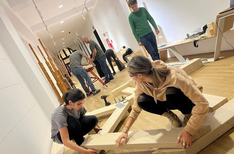 3 Obiecte de mobilier din lemn – 3 bănci din GLULAM care completează mobilierul realizat pentru a oferi studenților un spațiu de lucru pe holul etajului 4, corpul vechi, realizate în cadrul unui workshop dedicat, ce a avut loc în datele 17-18 noiembrie. Workshopul a fost coordonat de șef lucrări arh. Justin Baroncea, cu participarea studenților Ene Răzvan, Geangu Andreea-Elena, Șerbănescu Maria-Alexandra, Vlasceanu Delia-Adriana, Mindrigiu Maria-Elena, Siliște Tudor, Chiurciu Ioan, Mărgărit Maria,Rădulescu Cristian alături de membrii echipei de proiect Baroncea Justin, Mihăescu Oana, Prelipcean Andreea, Sebastian Cojocaru.