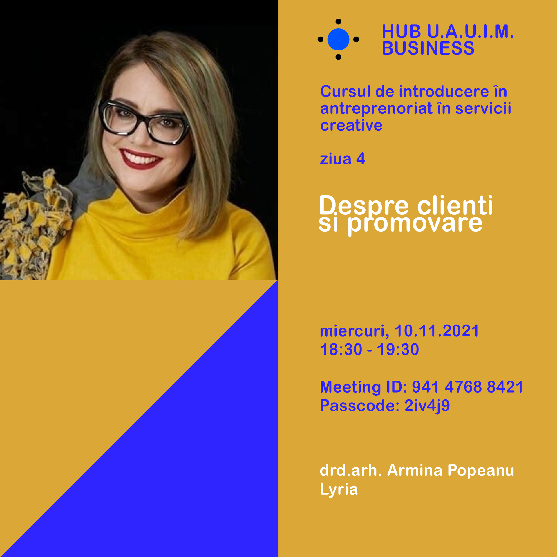 - A4c. Organizarea unui spațiu virtual pentru expunere planuri de afaceri/inițiative antreprenoriale în desfășurare elaborate de studenți/tineri absolvenți UAUIM
