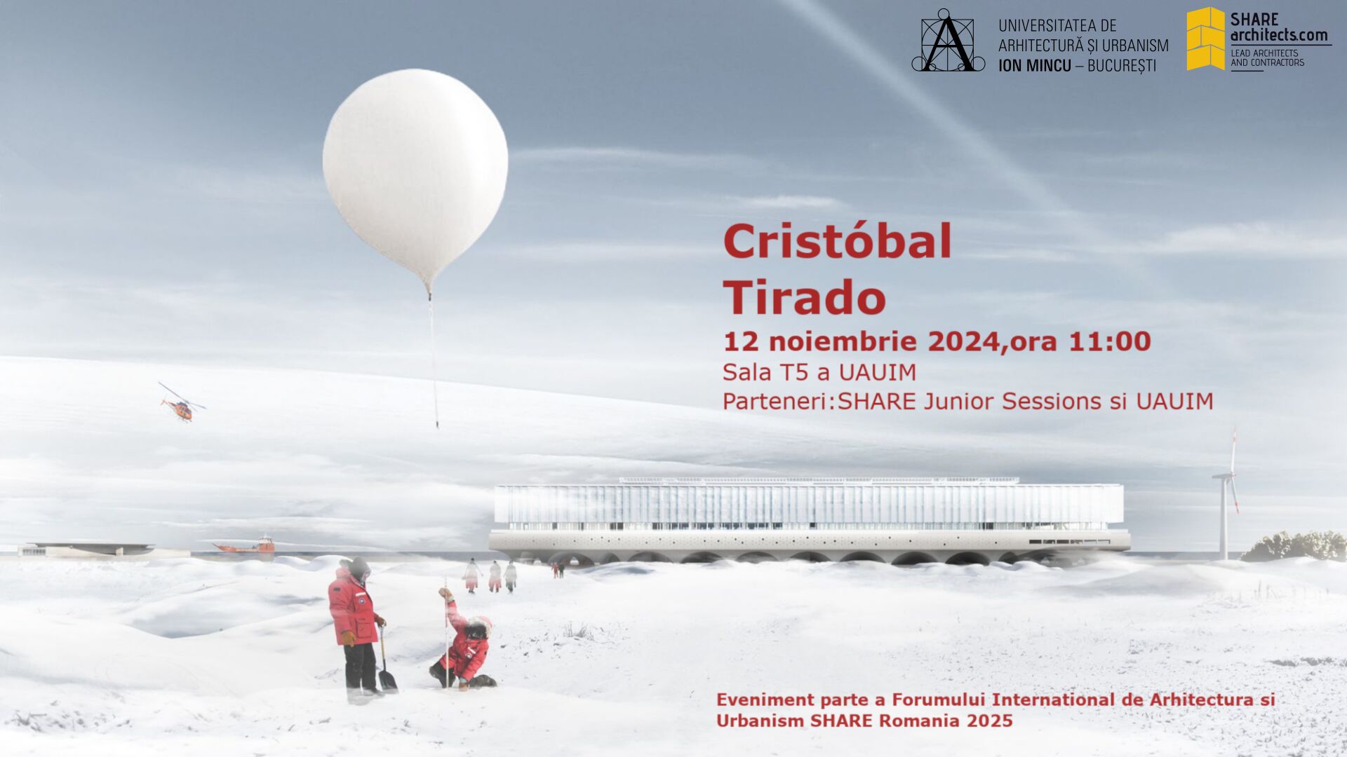 Universitatea de Arhitectură și Urbanism „Ion Mincu” din București are plăcerea de a găzdui conferința susținută de arhitectul Cristóbal Tirado, invitat în cadrul SHARE Romania Forum 2025.