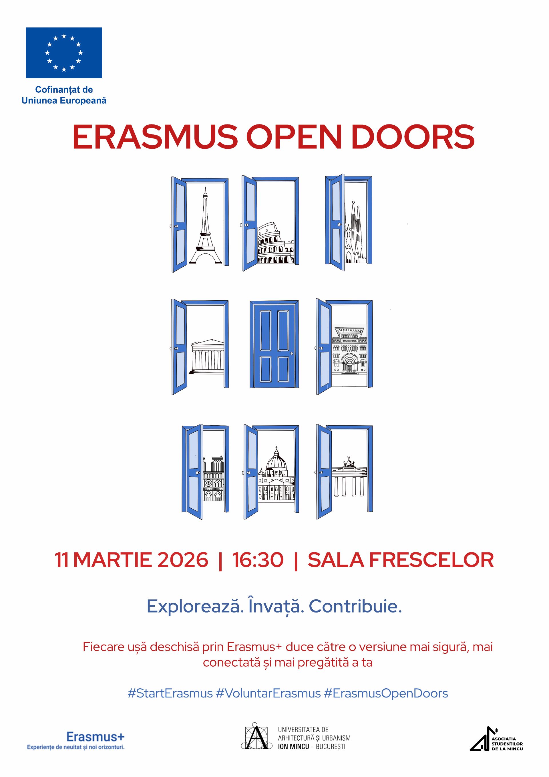 Vă invităm miercuri, 11 martie 2026, la ora 16:30, în Sala Frescelor a UAUIM, la evenimentul «Erasmus Open Doors».