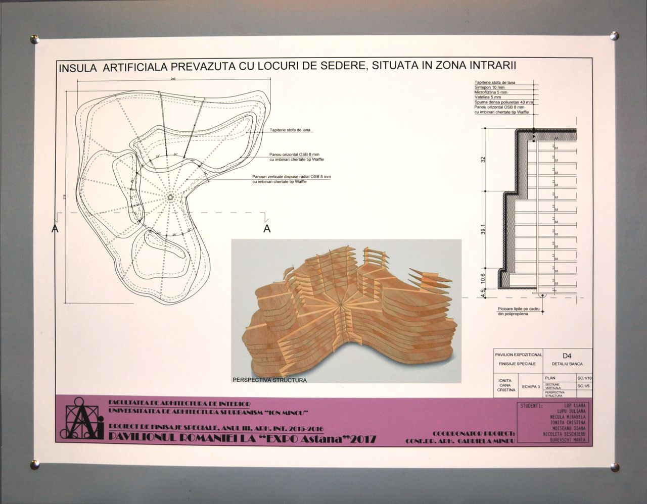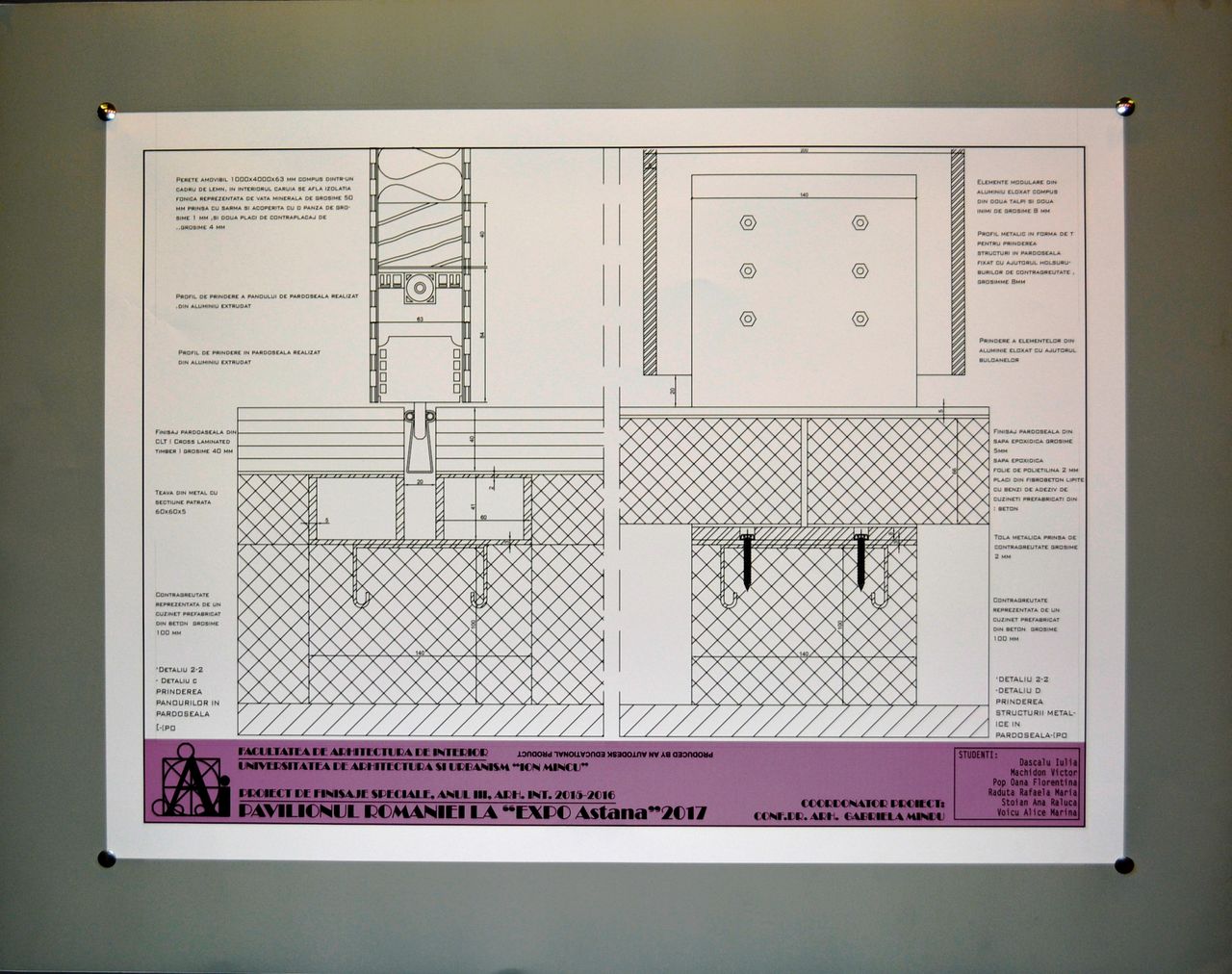 Vor fi prezentate proiectele studenṭilor anului 3 ai Facultăṭii de Arhitectură de Interior, derulate în perioada octombrie 2015 - ianuarie 2016 în cadrul cursului de Finisaje Speciale. Proiectele au fost realizate în echipe de lucru și au urmărit diverse tematici: Pavilionul României la Expo Astana 2017 sau reamenajări ale unor spaṭii interioare situate în clădiri cu valoare de patrimoniu, clasificate ca monumente istorice.