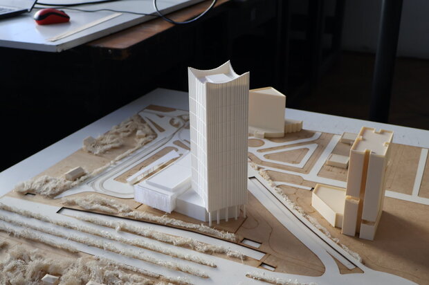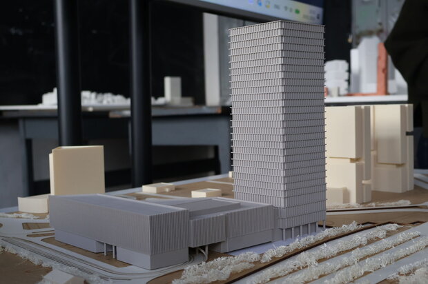 Expoziția reunește studii și propuneri dezvoltate în cadrul atelierului, ca rezultate ale unui parcurs de proiectare orientat spre testarea scenariilor de inserție urbană, a strategiilor de compoziție și a raportului dintre eficiența funcțională și reprezentativitatea arhitecturală. În egală măsură, sunt discutate implicațiile de mediu, mobilitate și utilizare, specifice clădirilor înalte, în contextul densificării și al transformărilor urbane actuale.