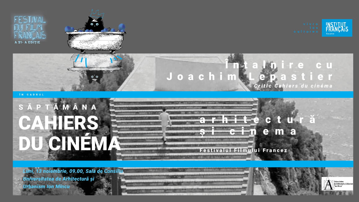 Joachim Lepastier este invitatul Universității de Arhitectură și Urbanism „Ion Mincu” București la o discuție despre arhitectură și film.