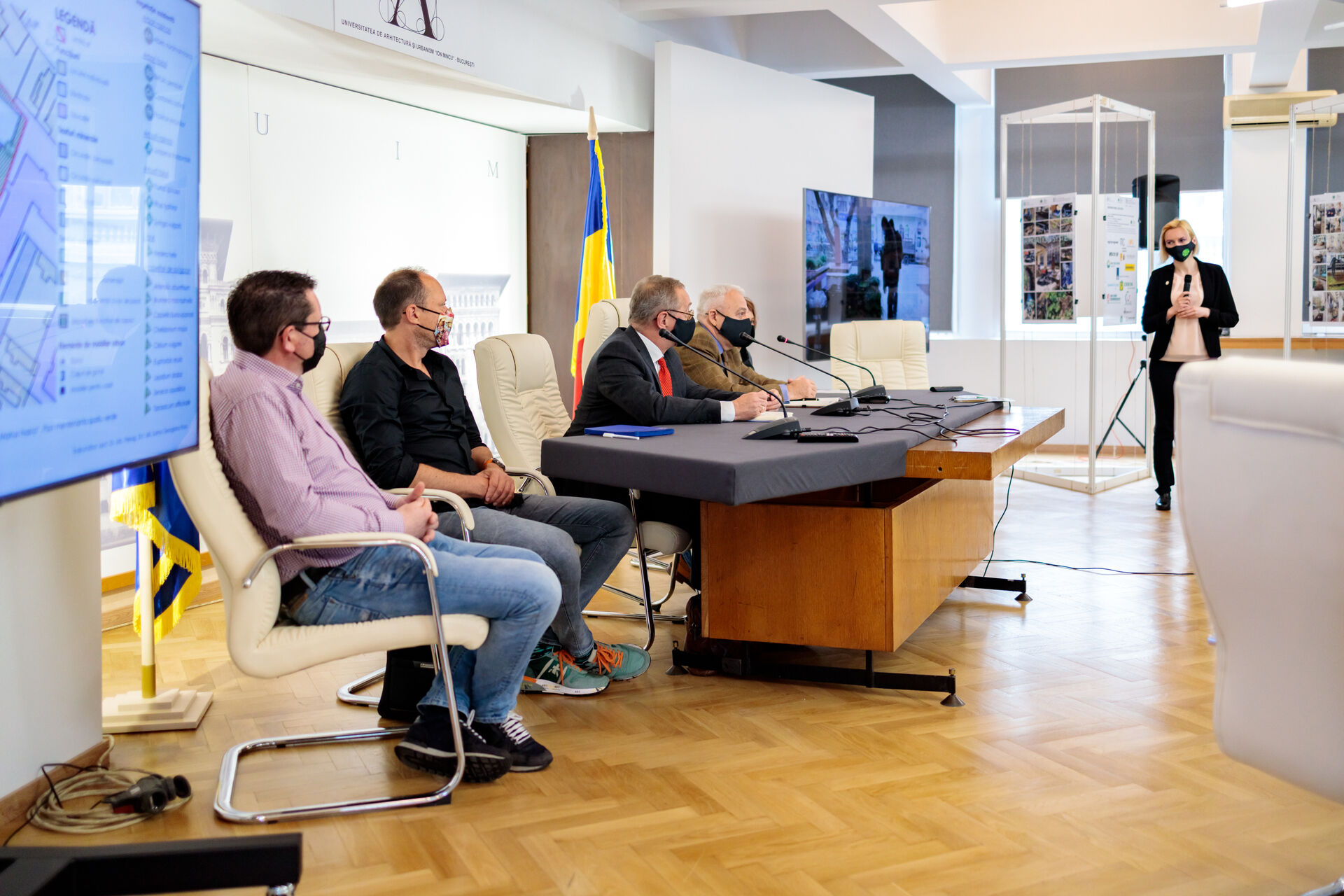 La ceremonie a fost prezentat proiectul, alături de vernisajul expozitiei “De la concept la implementare: Modern Meeting@UAUIM”.