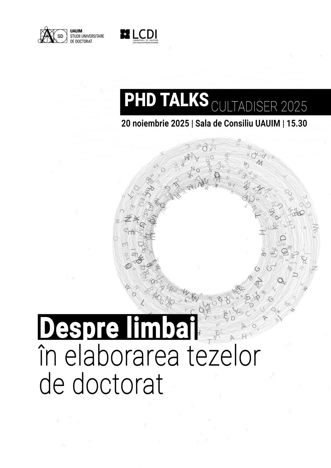 PhD Talks este un CLUB DE DIALOG ȘI SCHIMB DE BUNE PRACTICI pentru ciclul trei de studii universitare (doctorat) în arhitectură și urbanism din cadrul UAUIM organizat în cadrul LABORATORULUI DE CERCETARE DOCTORALA INTERDISCIPLINARĂ (LCDI) prin programul CULTADISER. Atât pentru cei aflați la început de drum, cât și pentru cei aproape de finalizarea tezei, PhD Talks oferă un spațiu de comunicare și interacțiune directă, unde doctoranzii pot împărtăși din experiențele și provocările cercetării doctorale, își pot extinde rețeaua profesională, conectându-se cu colegi, profesori și experți din domeniu, creând oportunități de colaborare.