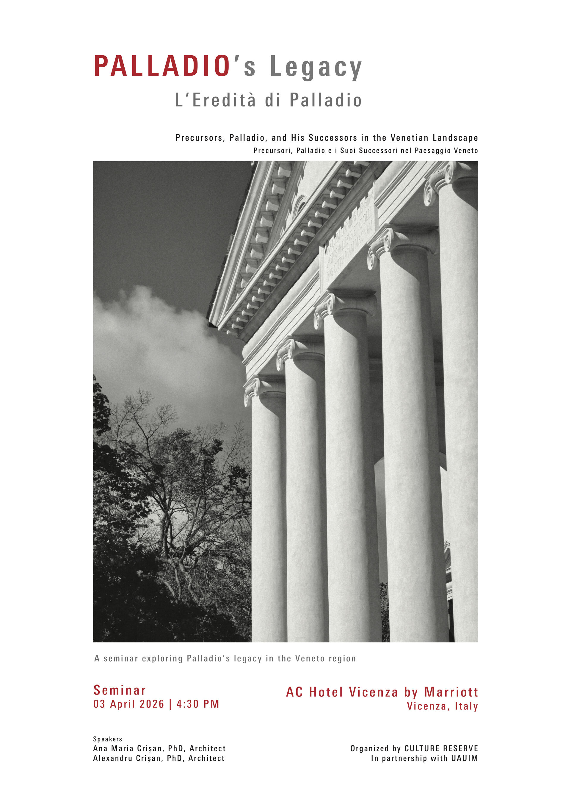 Vă invităm să participați la un seminar dedicat moștenirii palladiene, având ca temă personalitatea și contribuția arhitectului Andrea Palladio, o figură a cărei influență depășește epoca în care a trăit. Evenimentul își propune să ofere un cadru de reflecție și dialog asupra impactului operei sale în istoria arhitecturii.