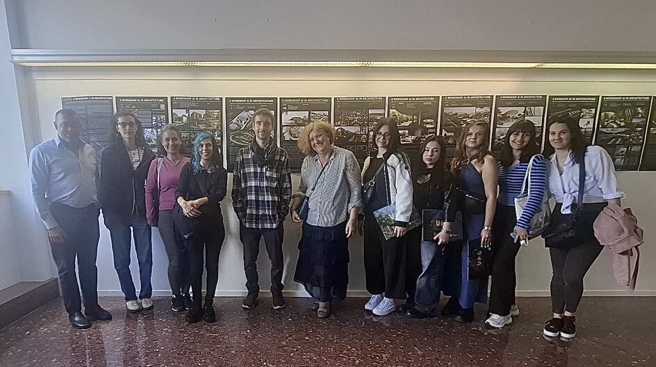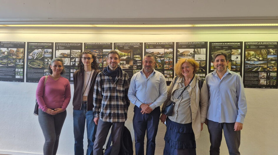 Echipa de studenți care a participat la ultimul Workshop Videomapping și Patrimoniu (Empuries, septembrie 2025), a avut și ocazia de a vizita ETSA Barcelona, în cadrul căreia a parcurs și expoziția dedicată proiectelor celui de-al Al II-lea Workshop "AI în Arhitectură", pe care le prezentăm și aici.