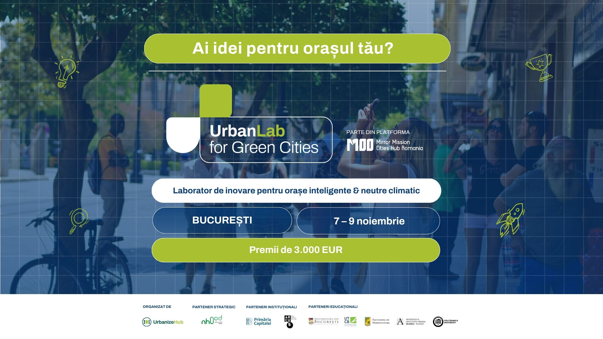 UrbanLab for Green Cities este un program dezvoltat de UrbanizeHub, parte din platforma M100 - Mirror Mission – Cities Hub România.